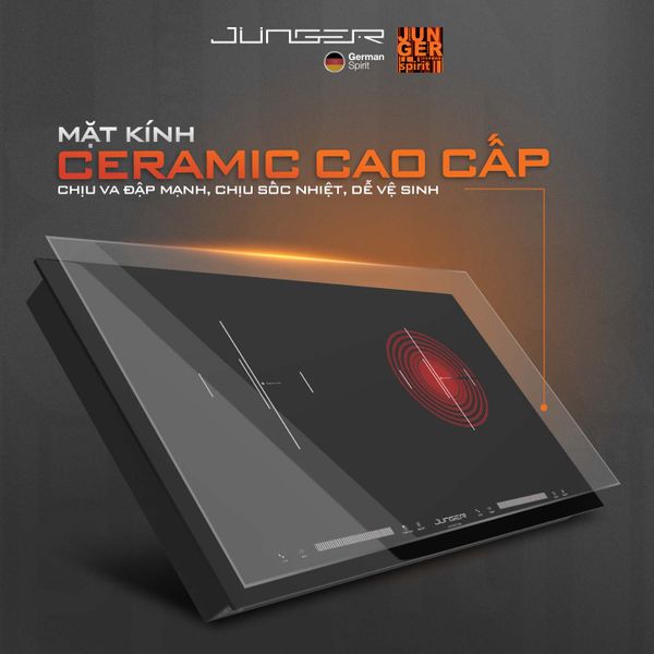 Mặt kính Ceramic cao cấp chống va đập, chống xước hiệu quả và chịu sốc nhiệt lên đến 700℃. Khả năng truyền nhiệt nhanh, đều giúp nấu ăn ngon hơn và tiết kiệm điện. Bề mặt sáng bóng dễ vệ sinh, giữ cho bếp luôn như mới.