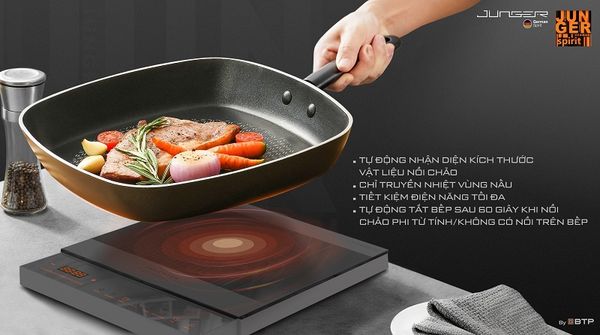 Bếp sử dụng sò công suất IGBT của Infineon Technology AG (Đức) giúp điều chỉnh công suất linh hoạt, duy trì dòng điện ổn định, đảm bảo an toàn và hiệu suất cao.