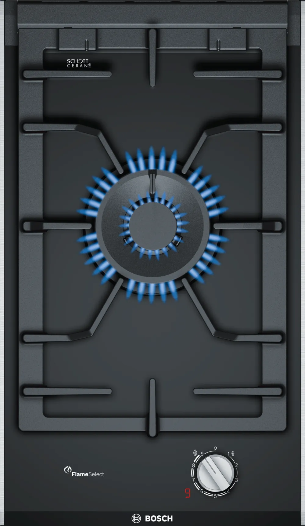 Để so sánh với những loại bếp gas truyền thống khác, bếp gas âm Bosch PRA3A6D70 nổi bật hoàn toàn với tính năng thông minh FlameSelect. Với tính năng nay, bếp được chia sẵn 9 mức nhiệt trên nút vặn điều khiển. Bạn có thể điều khiển bếp đến 1 trong 9 mức nhiệt 1 cách dễ dàng và chính xác. Việc chọn chuẩn mức lửa cho từng món ăn chưa bao giờ dễ dàng đến thế. Không còn những ngày tháng phải căn chỉnh nhiệt theo cảm tính nữa. Giờ đây Bếp gas âm Bosch PRA3A6D70 là giải pháp thông minh của bạn.