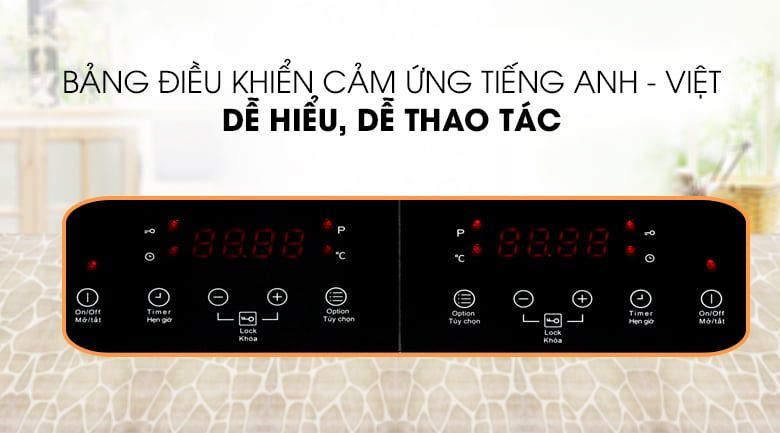 Tiện ích: Có hẹn giờĐiều chỉnh thời gian độc lập từng vùng nấu