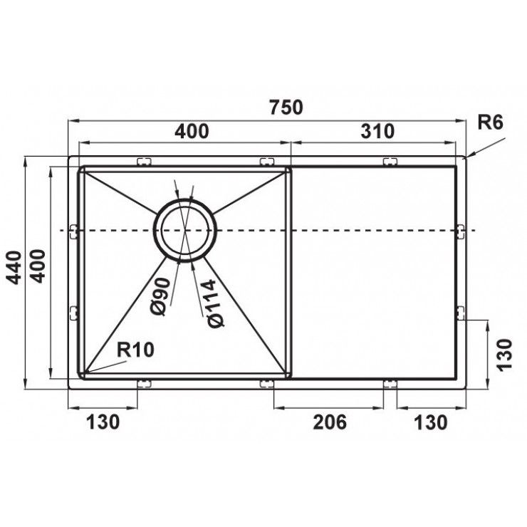 Kích thước chậu: 750D x 440R mm