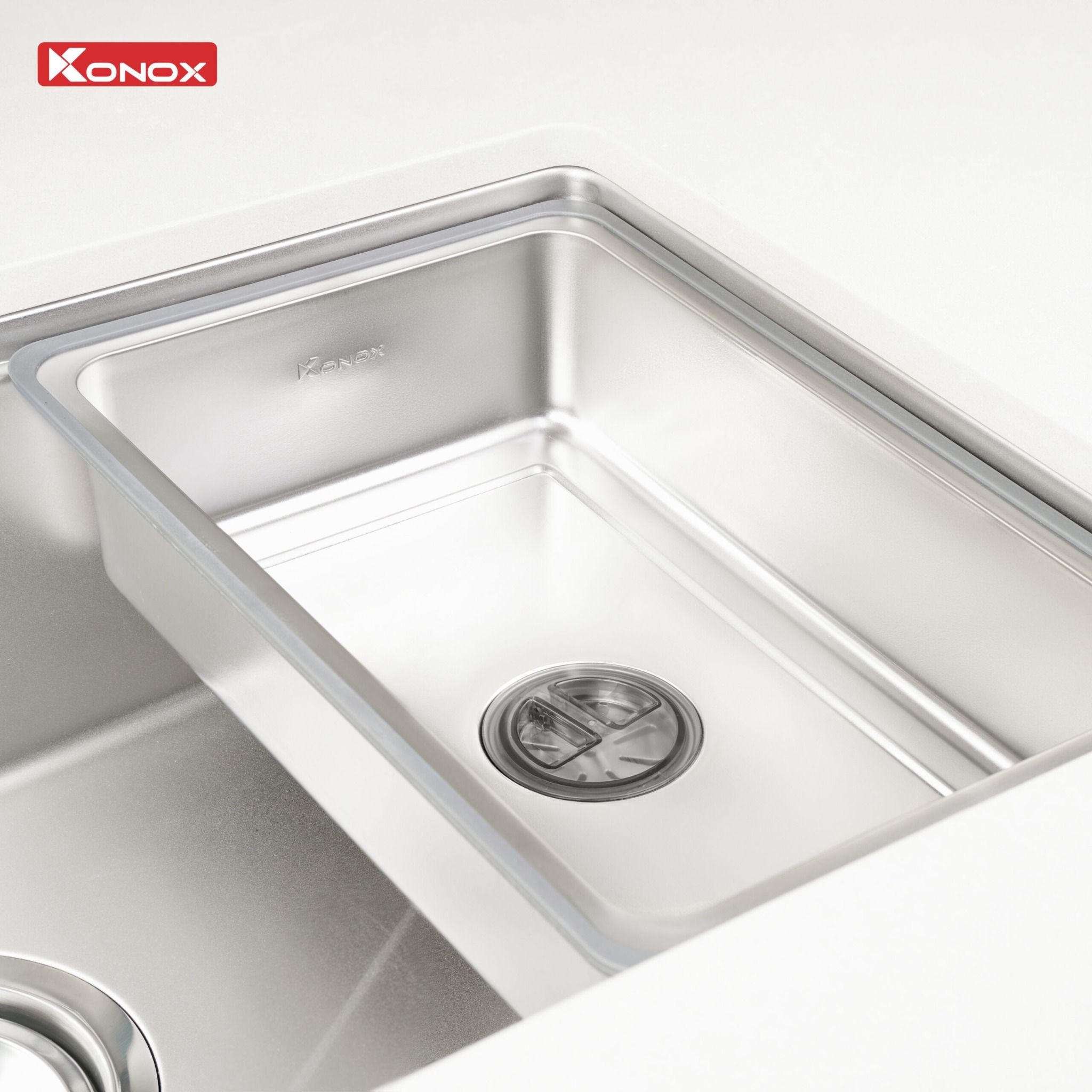 Với model Tari 8748SM, Konox ra mắt công nghệ xử lý bề mặt trơn mịn sở hữu độ bền, khả năng chống ăn mòn lý tưởng, an toàn với sức khỏe và 100% có thể tái chế, giữ vững độ bền và thẩm mỹ theo thời gian. Tari 8748SM với thiết kế vuông góc tinh tế sắc bén tạo điểm nhấn cho không gian bếp.