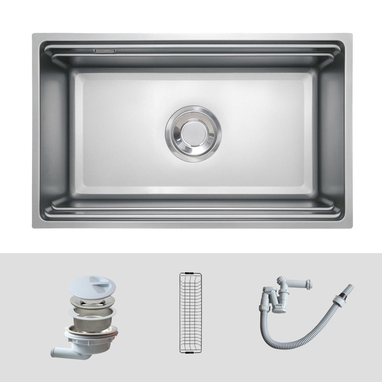 Bộ sản phẩm bao gồm: 01 chậu rửa + 01 bát rác + 01 Siphon + 01 giỏ inox.