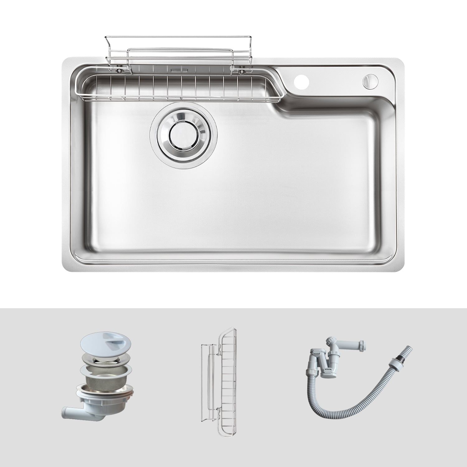 Lưu ý: Bộ sản phẩm bao gồm 01 chậu rửa + 01 bát rác + 01 Siphon + 01 giỏ inox.