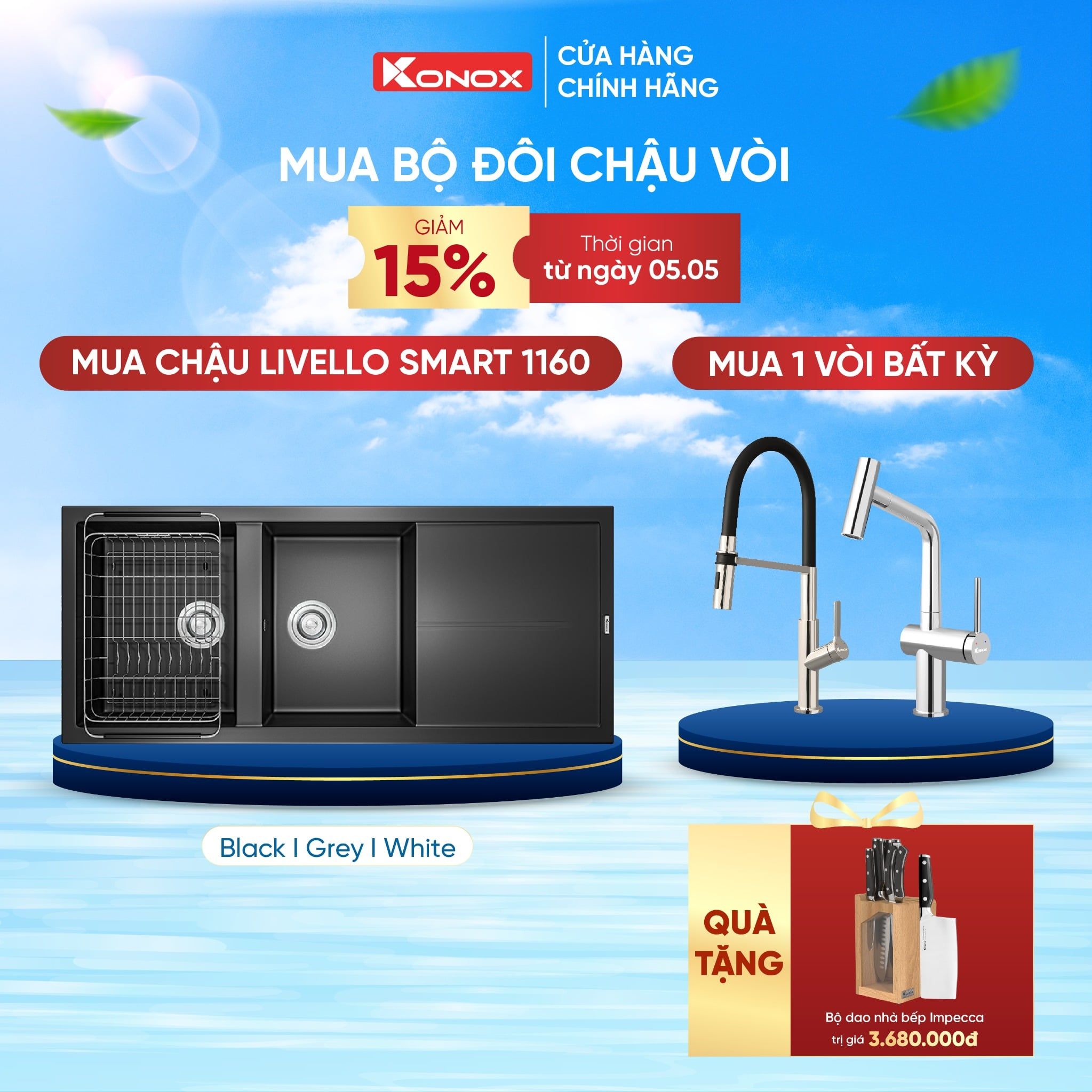 Chậu rửa bát Konox chất liệu đá Livello 1160 Grey