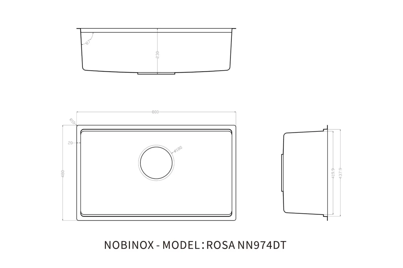 Chậu tạo nên từ thép không gỉ Inox 304 tạo độ sáng bóng vượt trội tạo cảm giác mượt mà đồng nhất trên toàn bộ bề mặt chậu bếp, chống oxi hóa, an toàn cho sức khỏe.