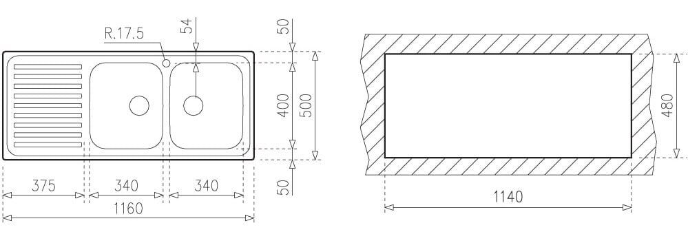 Kích thước tổng quát (D x R): 1160 x 500 mm