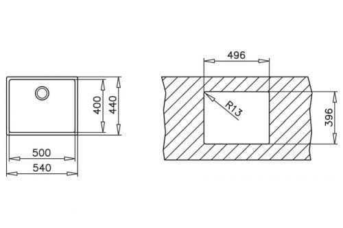Kích thước cắt đá (D x R): Lắp dương: 530 x 430 mm