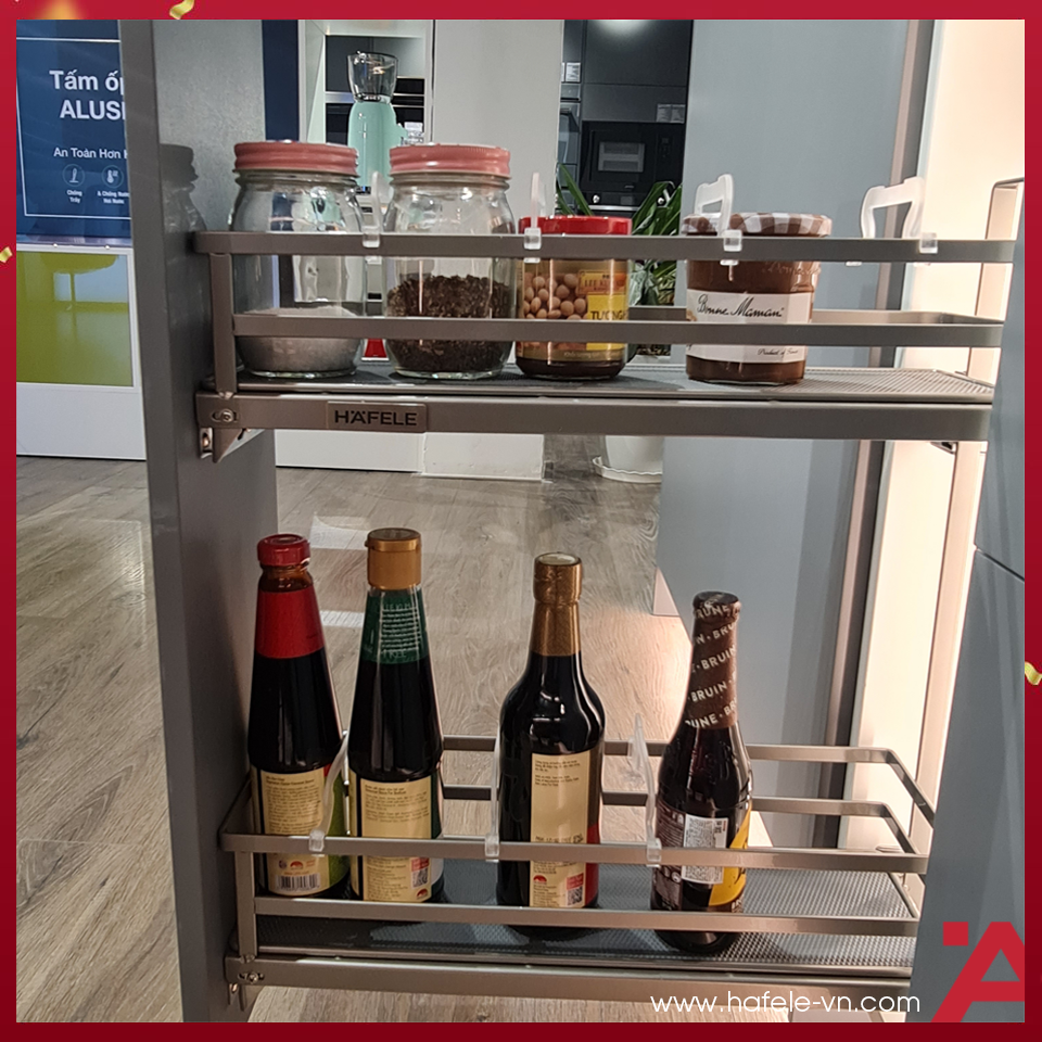 + Giá gia vị Hafele Kosmo Omero 300 thiết kế tận dụng hiệu quả không gian hẹp