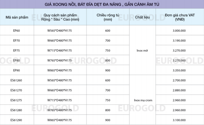 Đặc điểm giá xoong nồi tủ dưới Eurogold ES61260