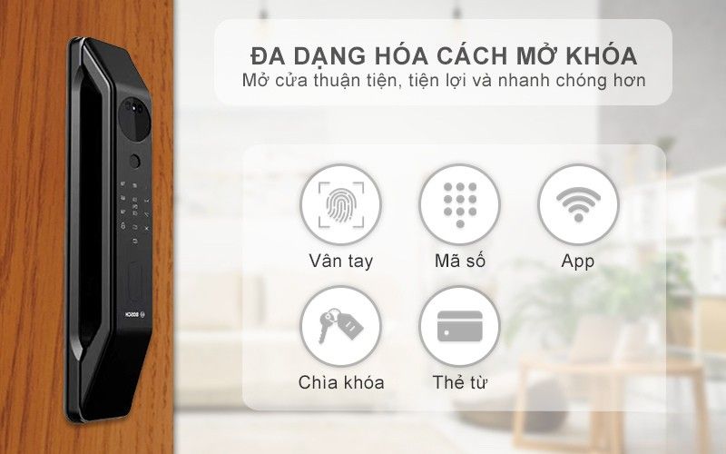 - Chức năng mở cửa bằng APP Wifi: Kết nối với điện thoại mở cửa từ xa qua ứng dụng trên điện thoại thông minh không giới hạn khoảng cách.