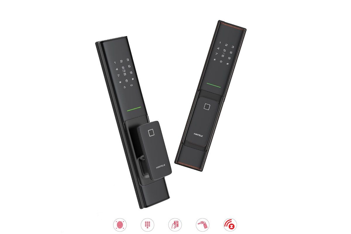 Khóa điện tử Hafele PP8100 với 4 cách mở: Vân tay, Thẻ từ, mã số và chìa cơ
