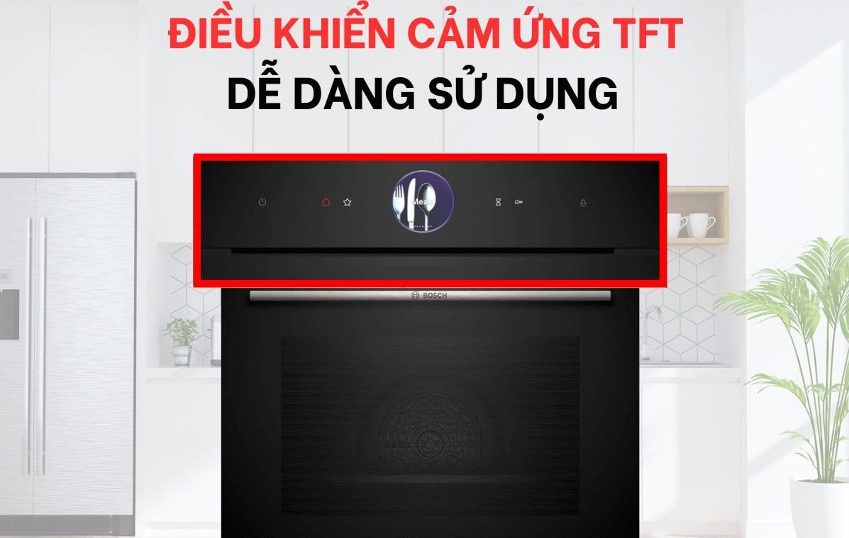 | Tiện nghi | - Màn hình TFT - Đồng hồ điện tử - Nhiệt độ tối ưu/đề xuất/thực tế - Điều khiển giọng nói - Khí nóng 3D - Tay nắm nhôm - AirFry - Gia nhiệt nhanh - Đèn halogen nội thất có thể tắt/bật - Quạt làm mát - Kết nối Home Connect |
