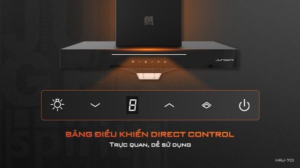 Máy hút mùi Junger HRJ-701 sở hữu bảng điều khiển cảm ứng Direct Control, giúp người dùng thao tác một cách dễ dàng và trực quan. Tính năng này phù hợp với đa số người dùng, mang lại trải nghiệm sử dụng đơn giản và tiện lợi.