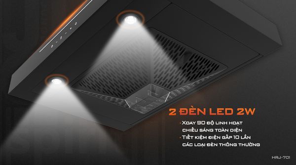 Máy được trang bị 2 đèn LED 2W có thể xoay 90°, giúp chiếu sáng toàn diện khu vực bếp. Đèn LED này có hiệu suất ánh sáng cực cao nhưng lại tiết kiệm điện năng đến 10 lần so với các loại đèn chiếu sáng thông thường, giúp bạn tiết kiệm chi phí điện năng trong suốt quá trình sử dụng.