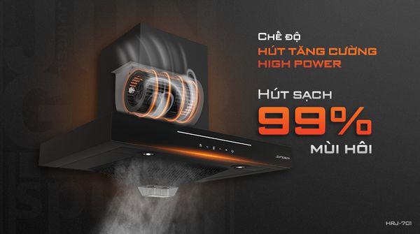 Junger HRJ-701 trang bị động cơ AC mạnh mẽ, hoạt động siêu yên tĩnh với mức âm thanh chỉ 53dB. Lực hút 1000m3/h mạnh mẽ giúp làm sạch không khí nhanh chóng, loại bỏ đến 99% mùi dầu mỡ và thức ăn khó chịu, mang lại bầu không khí trong lành cho căn bếp của bạn.
