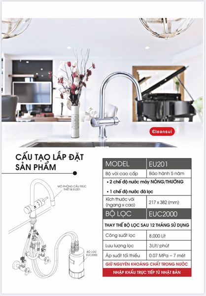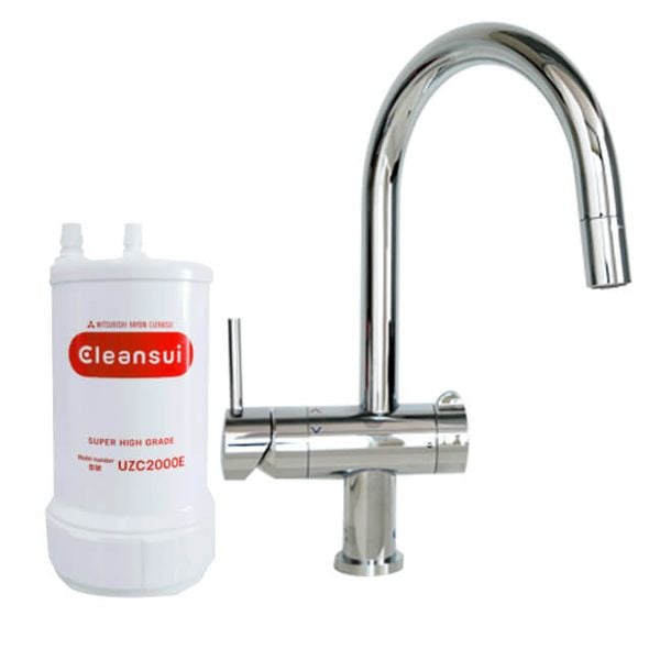 Sự kết hợp 3 trong 1 khi sử dụng vòi nước Cleansui EU201 sử dụng nước sinh hoạt nóng và lạnh kết hợp đầu vòi ra của nước tinh khiết máy lọc nước