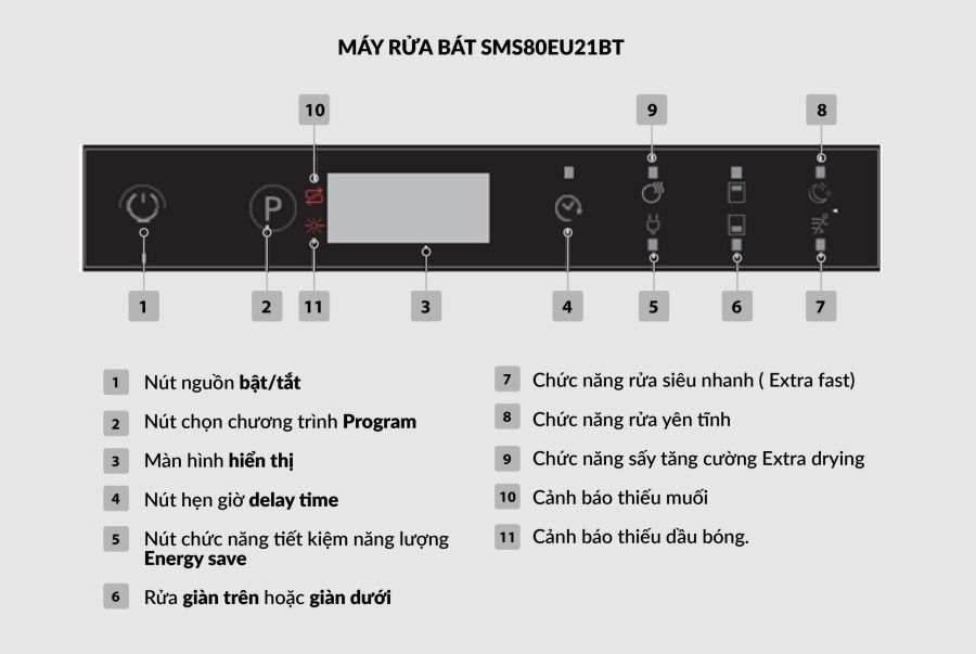 Đặc tính sản phẩm Máy rửa bát âm toàn phần Eurosun SMS80EU21BT
