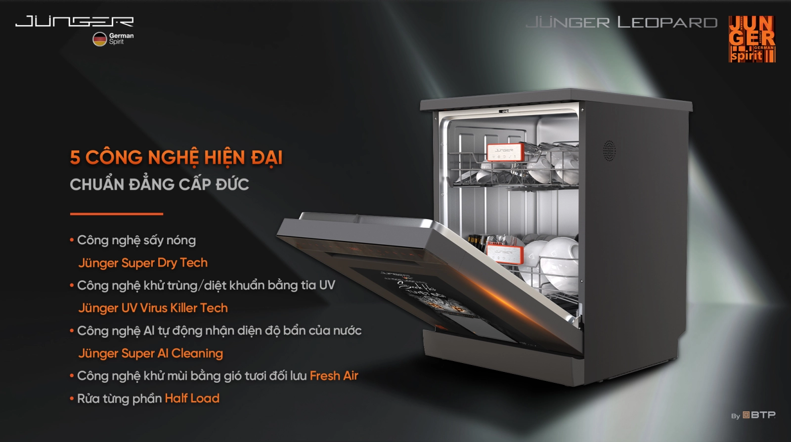 Junger Leopard DWJ-143 tích hợp 5 công nghệ tiên tiến để đảm bảo bát đĩa luôn "Sạch Khô Tuyệt Đối":