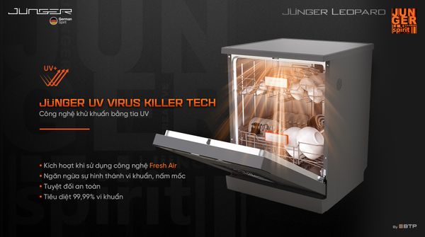 Công Nghệ Khử Trùng Tia UV Junger UV Virus Killer Tech: Tiệt trùng đến 99,99% vi khuẩn, bảo vệ sức khỏe người sử dụng.