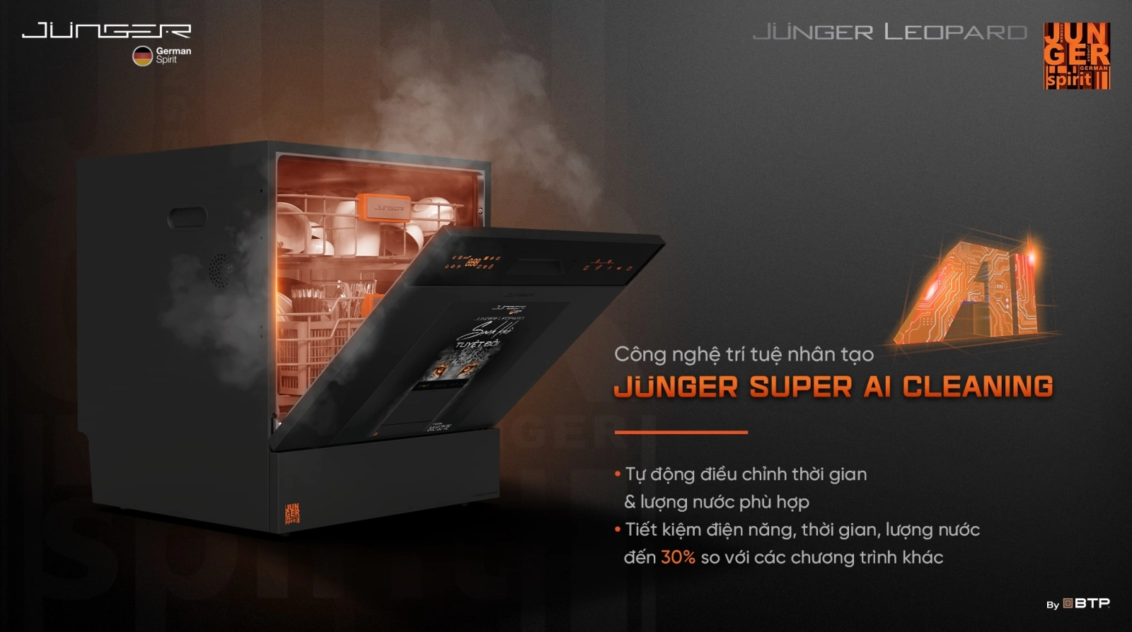 | Công nghệ rửa: | Tiệt trùng bằng tia UV - Junger UV Virus Killer Tech, Công nghệ rửa khử khuẩn 75°C Junger 3D Hygiene Tech |