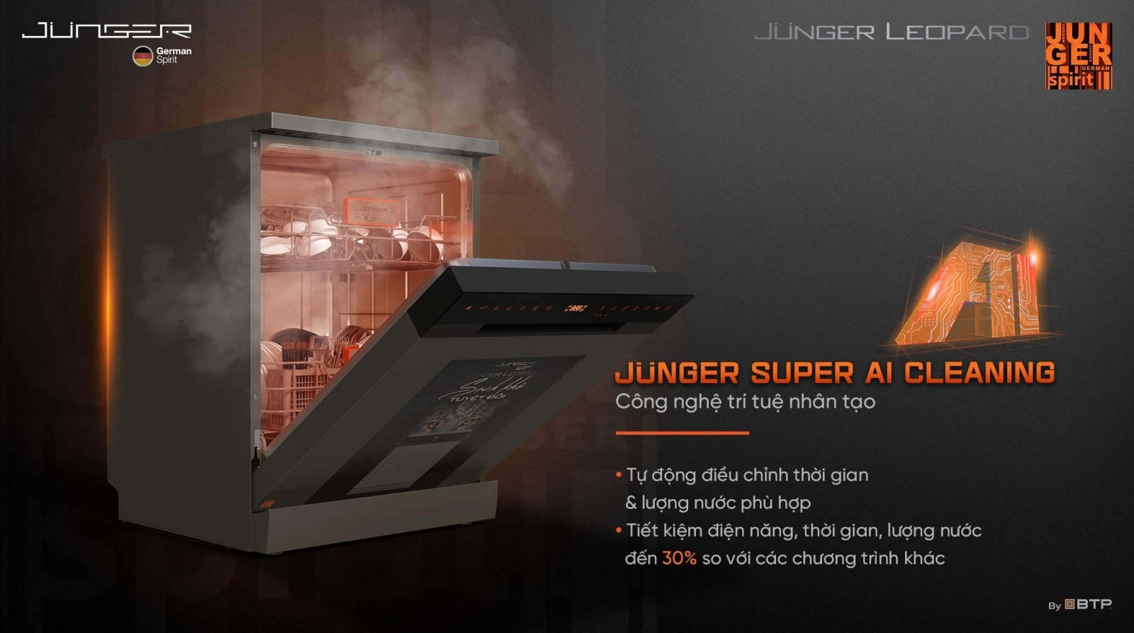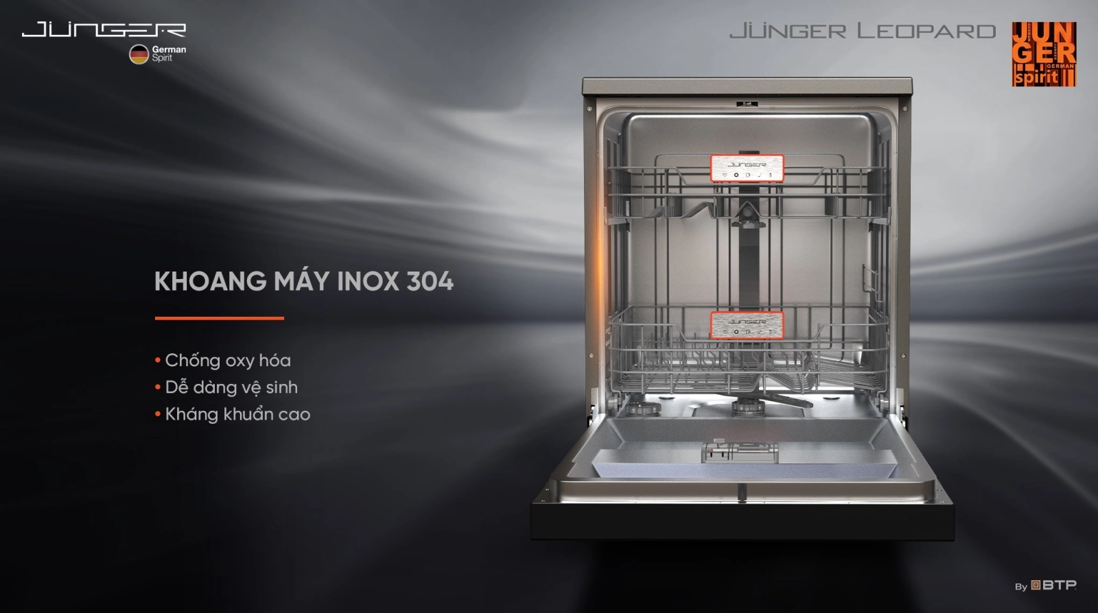 | Công nghệ rửa: | Tiệt trùng bằng tia UV - Junger UV Virus Killer Tech, Công nghệ rửa khử khuẩn 75°C Công nghệ khử khuẩn nước bằng icon Bạc Junger Ag+ Protection |
