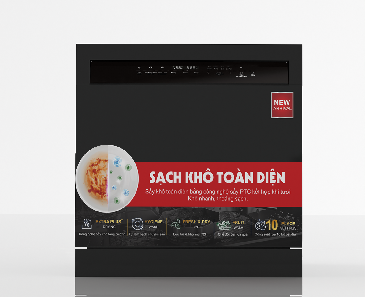 Sấy khô và lưu trữ lên tới 72 giờ | 72h Fresh&dry: Nhờ quạt tuabin, chức năng lưu trữ có thể đạt được hiệu quả sấy khô tốt hơn và giữ lại khí tươi trong máy rửa chén. Chức năng lưu trữ hoạt động sau khi máy rửa chén đã rửa xong và có thể hoạt động trong 24/48/72 giờ. Bạn không thể sử dụng chức năng Lưu trữ sấy khô khi chọn chế độ Rửa nhanh (Rapid) và Ngâm (Soak)