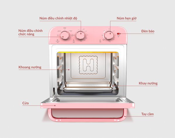 Ngoài ra, người dùng có thể linh hoạt điều chỉnh nhiệt độ từ 60°C - 230°C và hẹn giờ từ 5 - 60 phút, đáp ứng mọi nhu cầu chế biến món ăn khác nhau.