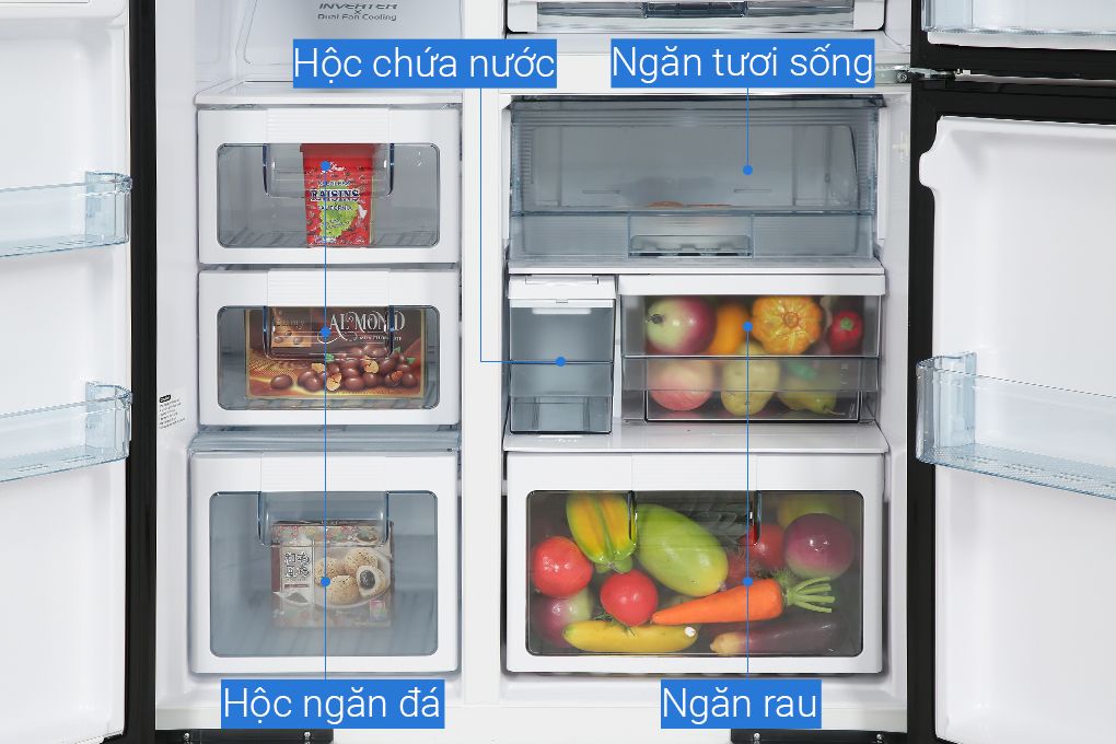 - Có nhiều ngăn chứa, khay đựng cho bạn bảo quản rau củ, trái cây thuận tiện, đáp ứng nhu cầu của mọi người có lối sống healthy, thường xuyên ăn nhiều rau củ quả.