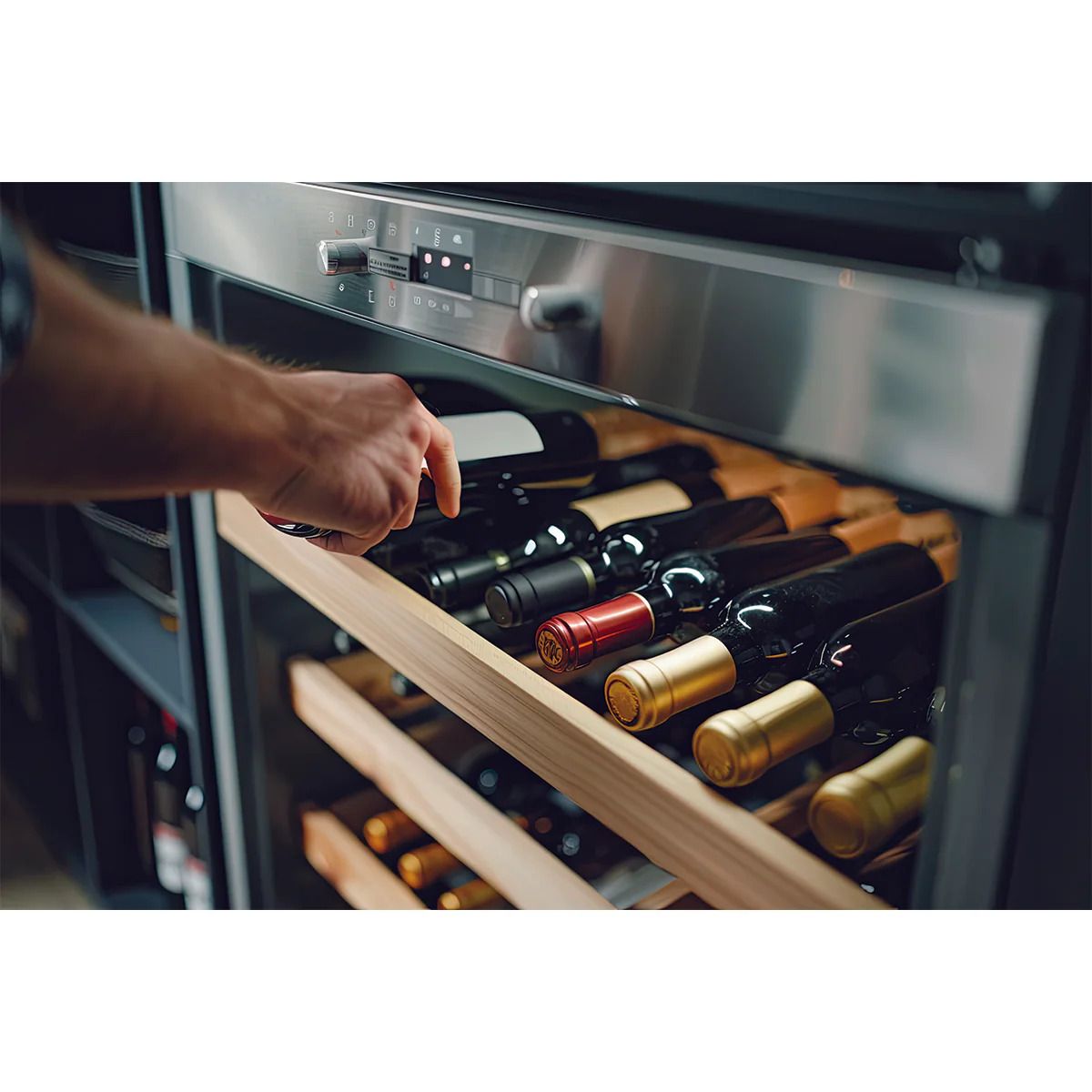 Tích hợp cửa kính ba lớp với một lớp Low-E, giúp cách nhiệt hiệu quả, ngăn đọng sương, bảo vệ rượu khỏi tác động của tia UV. Nhờ đó, rượu sẽ được bảo quản ở điều kiện lý tưởng, đảm bảo hương vị và chất lượng