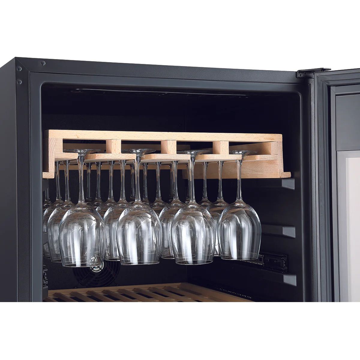 Tiện dụng với 11 ngăn chia bằng gỗ dễ dàng điều chỉnh không gian lưu trữ theo nhu cầu. Tích hợp kệ treo ly thủy tinh giúp việc thưởng thức rượu được tốt hơn và bảo quản gọn gàng hơn